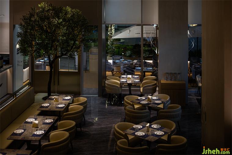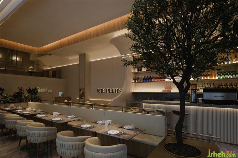 廳內(nèi)枝葉茂盛的橄欖樹用昂揚的生長姿態(tài)在盡情展示,仿佛提醒著來往的客人,深圳俄式餐吧設計無論身居何地,只要自信與堅強,每一個生命都能夠綻放自己的風采。