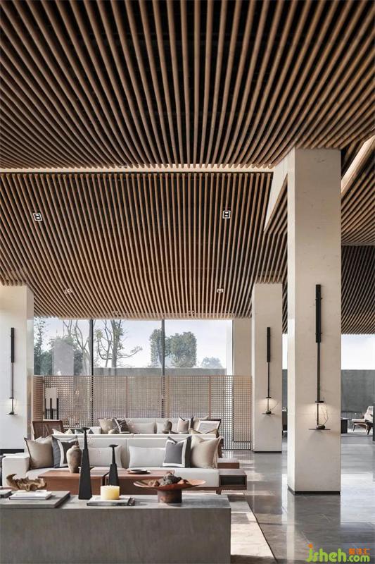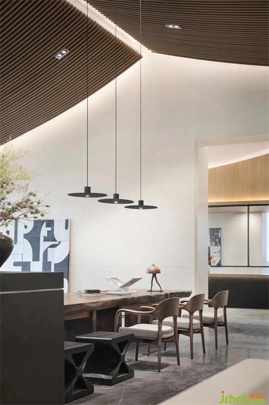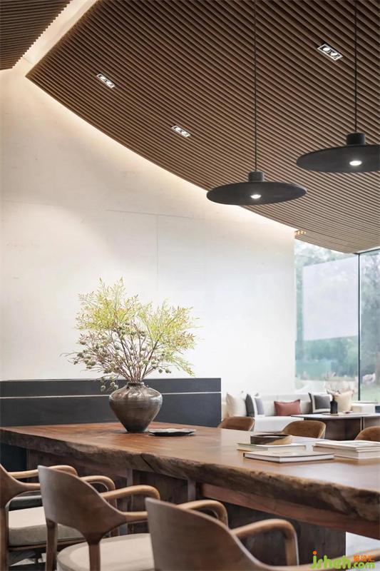 臨窗,仿如與山水相融,引入自然光線,盡享自然妙趣。輕松明快的頂面線條分割與售樓處設(shè)計讓人舒適與放松,午后身處其中,斜陽灑落時分,一盞清茶,一本古籍,淡泊寧靜的時光中沉淀了對生活的怡然。