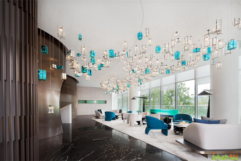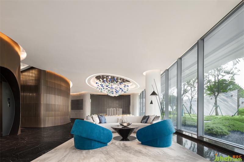 大自然賦予萬(wàn)物變化的形體,湖水涌動(dòng)仿佛要掙脫空間界定的桎梏。營(yíng)銷中心設(shè)計(jì)運(yùn)用西方極簡(jiǎn)繪畫手法將“百湖”的語(yǔ)言改編,轉(zhuǎn)化為藝術(shù)裝置的形態(tài),恰到好處地表現(xiàn)出空間的視覺張力。
