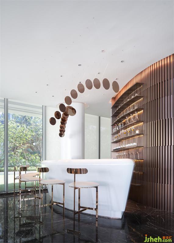 大理石、金屬和皮革構(gòu)成的家具飾面,軟硬結(jié)合,訴說(shuō)出空間流動(dòng)的語(yǔ)言。