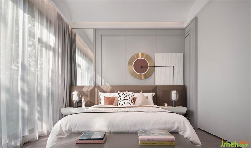 陽光正好,清風(fēng)微拂,自然與藝術(shù)的對(duì)話慢慢發(fā)生??臻g配置中性色調(diào)為主的弧線角寬屏床,雅致的格調(diào)被藝術(shù)的筆觸描摹、鋪敘,使美學(xué)的體驗(yàn)達(dá)到最大化。金屬及木質(zhì)材料與床頭線型燈的設(shè)計(jì)即保持優(yōu)雅的調(diào)性,也讓生活的情趣有了恰到好處的展現(xiàn)。