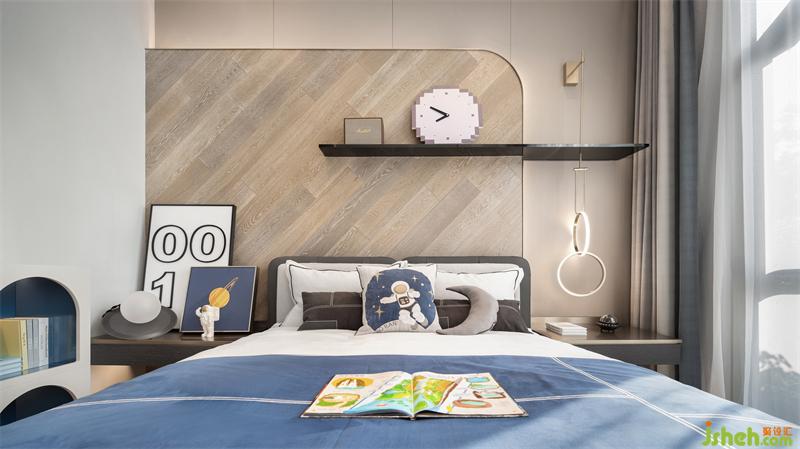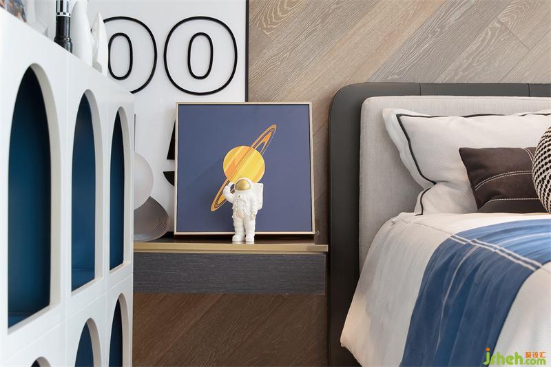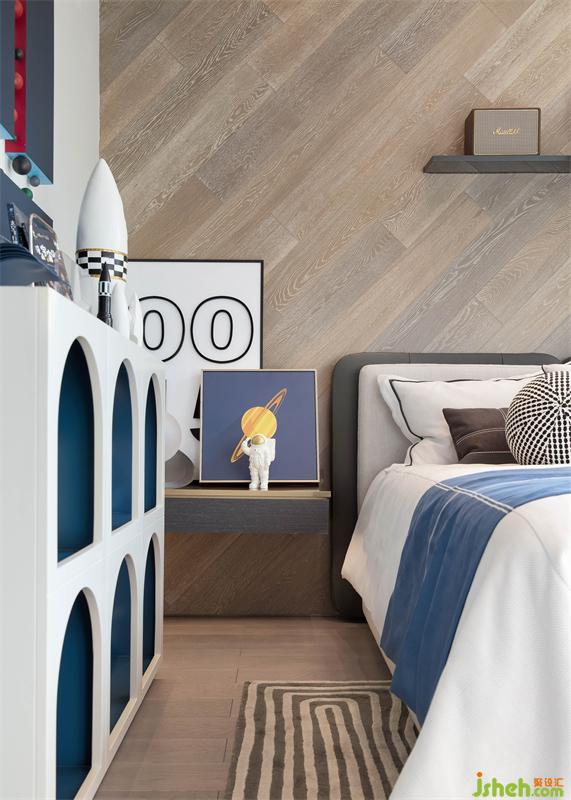 男孩房充分考慮人物設(shè)定特點(diǎn),整體色調(diào)以米色、咖色為主,空間籠罩在一派童真的格調(diào)之中,加之宇航員、火箭等物件的自然意象強(qiáng)化,科技感十足,彌漫著別具一格的活躍氣息。