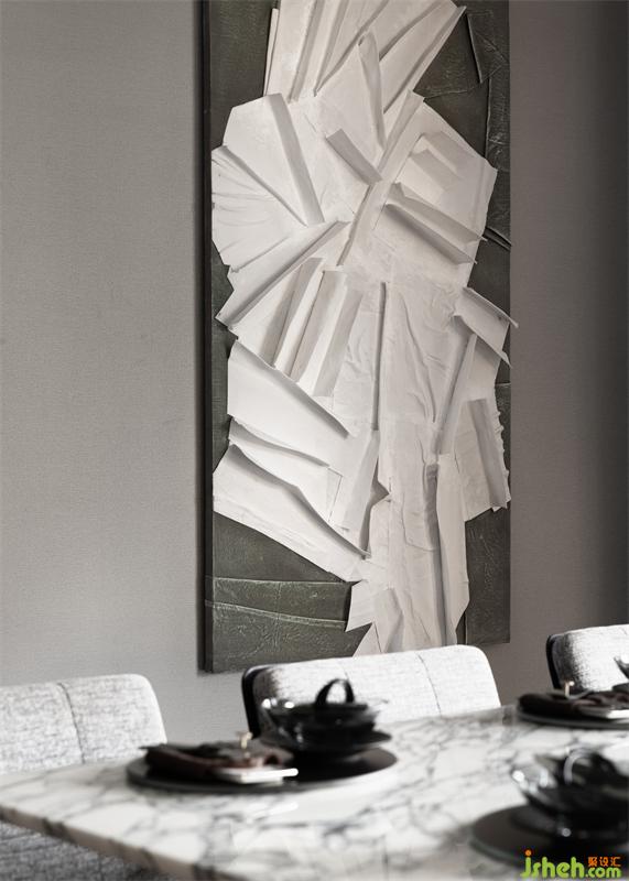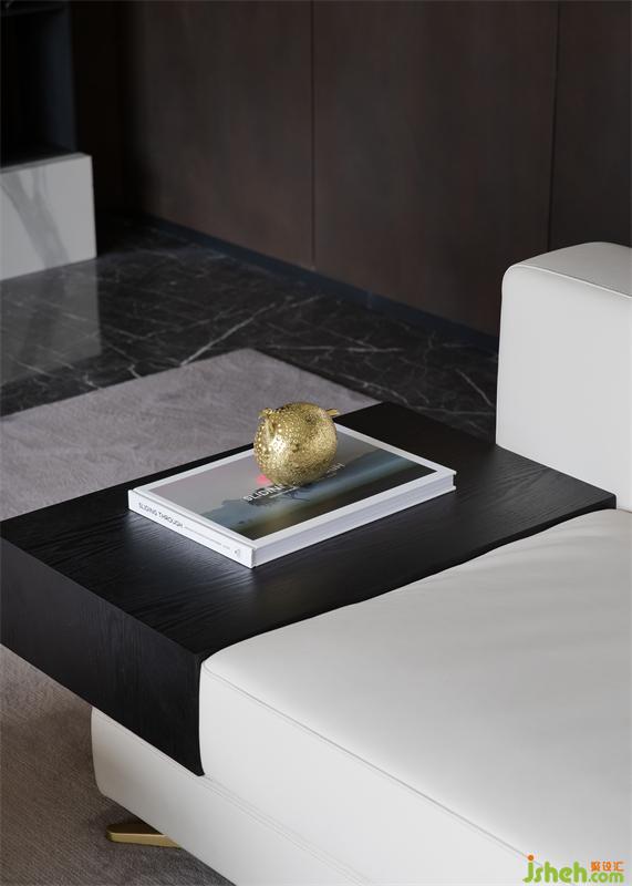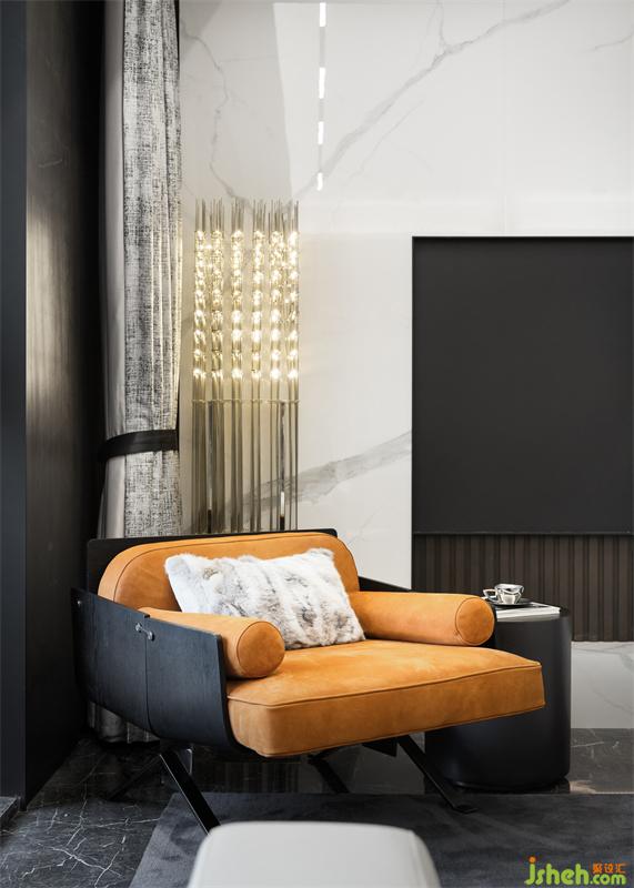 墻面使用大面積的石材和木飾面兼顧細(xì)節(jié),以低調(diào)細(xì)膩的材質(zhì)、色彩與肌理圍合,讓當(dāng)代藝術(shù)的詩意氣息流淌于其間,每種材質(zhì)的獨(dú)特性,無一不在訴說這空間的隱秘力量,突顯它的氣質(zhì)。