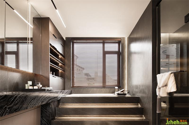 主臥從簡約、低奢優(yōu)雅的空間感受出發(fā),延續(xù)整體低飽和度色彩特點,樣板間設計并巧妙引入橙色進行整體空間提亮,在金屬與燈光的加持下,仿佛在沉靜中醞釀蓬勃的活力,讓平和優(yōu)雅的心境在此處生根發(fā)芽。