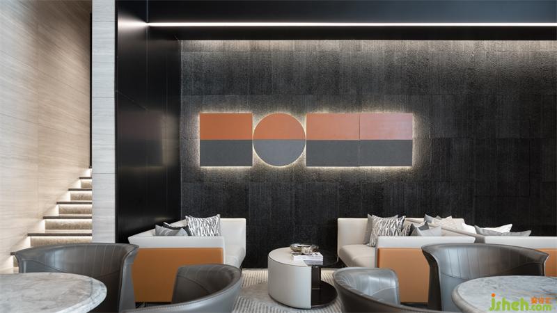以藝術(shù)的語素,與時間共頻共振,休閑區(qū)通過多維度明暗色彩對比排布出空間的疏密節(jié)奏,軟裝材質(zhì)的藝術(shù)疊搭,在秩序感上增加浪漫靈動,勾勒出顯于外而蘊于內(nèi)的會所場域。