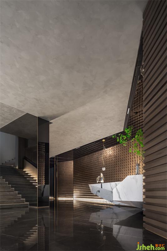 不銹鋼天花裝置產(chǎn)生一種嵌入性,將城市元素藝術(shù)性地滲透到山地形體和可塑的空間體量中。