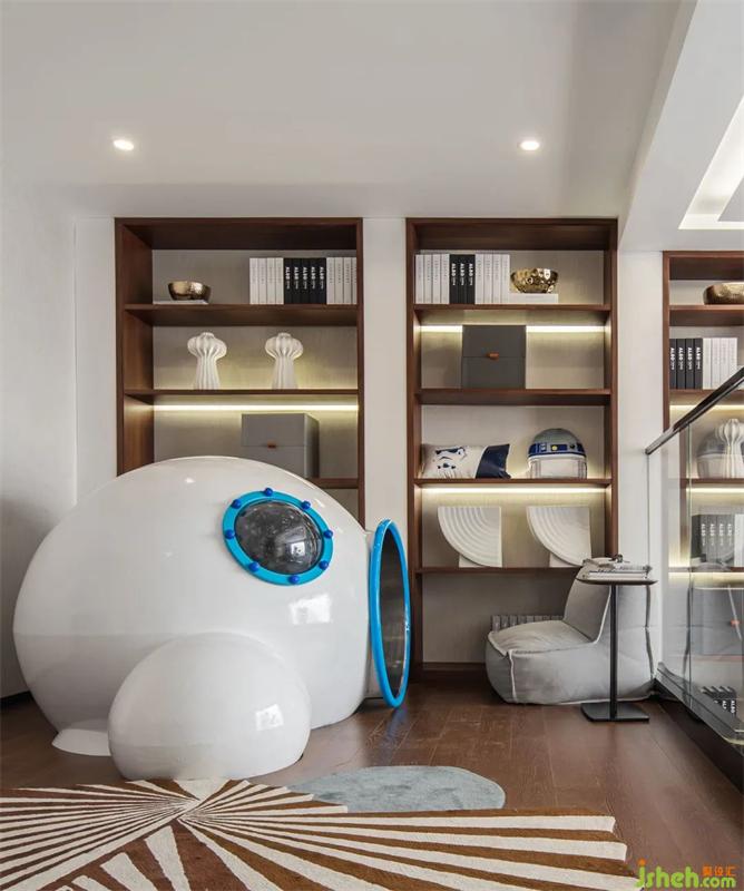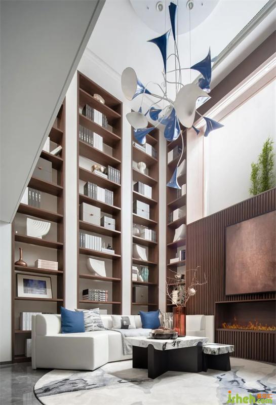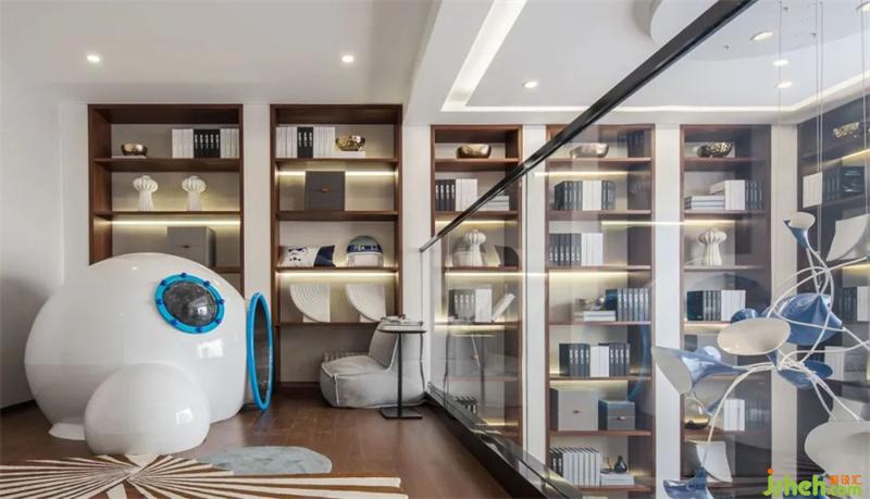 別墅裝飾在空間中觸發(fā)居者探索的意念。一條有方向的弧線彈跳在橫縱間的視覺(jué)感受中,借助光與影融合在整體的空間氛圍之內(nèi),平衡而充滿(mǎn)韻律。