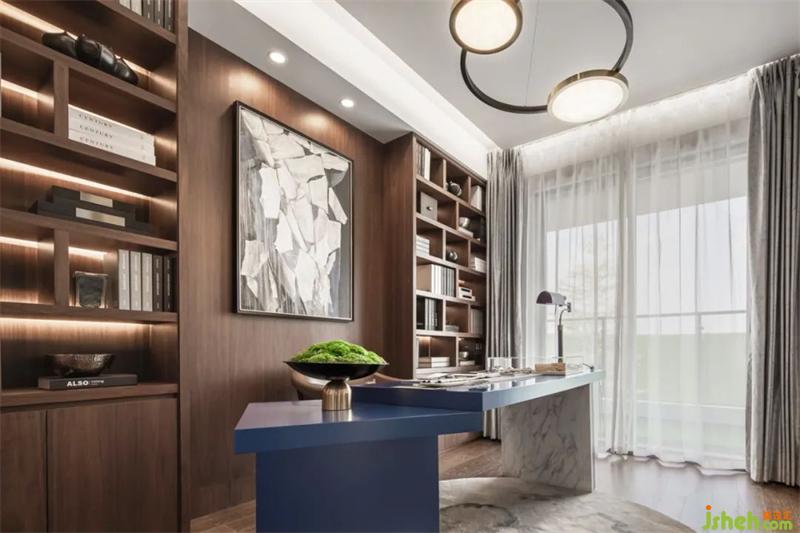 放大空間尺度,延伸精神享受,用開放式書柜填滿深縱,完成功能與形式的平衡,滿足居者的生活偏好和需求,賦予空間更多的精神內(nèi)涵,打造有態(tài)度的理想棲居。