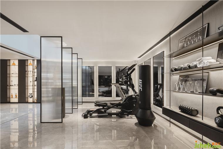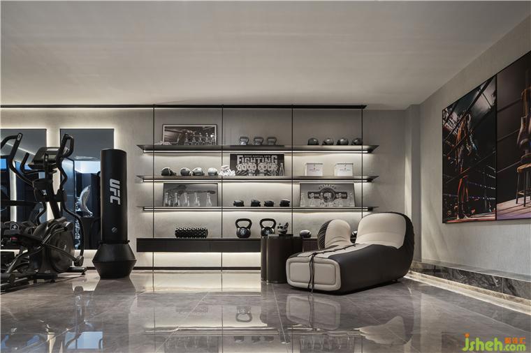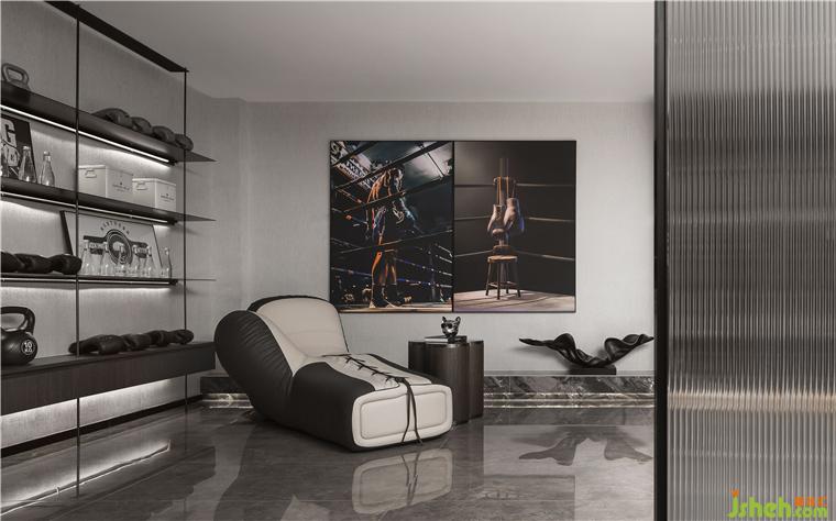 多元文化與藝術(shù)的盛行,樣板房設(shè)計(jì)讓新一代社會(huì)精英的生活不再只是工作的忙碌和日常的瑣碎,他們渴望表達(dá)自己的生活態(tài)度,追求自己的生活方式。健身區(qū)與閱讀區(qū)共存于同一個(gè)空間,利用玻璃屏風(fēng)與休息廳巧妙相隔,讓空間有著不同韻律的過(guò)渡。