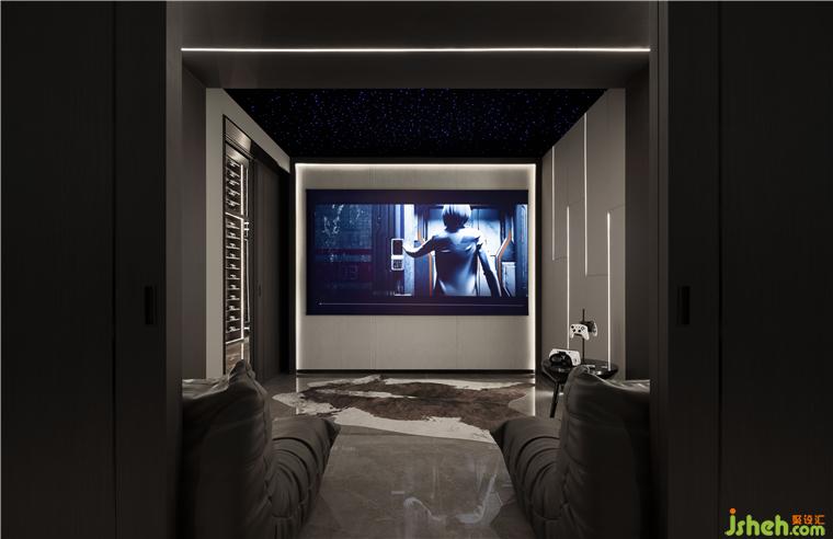 影音室除去冗雜的裝飾,樣板房設(shè)計(jì)讓居住者在星空的閃爍中享受生活的安寧恬靜。