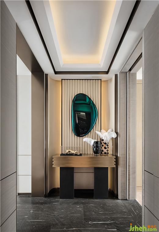 本案將“流金歲月”融合于細枝末節(jié)中,用多元的細節(jié)雕琢極富格調的生活場景,中鐵建樣板間設計構建出獨屬于當代的個性專屬空間故事。