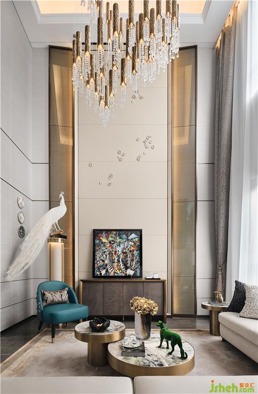 客餐廳以禮為序,大開大合,奢闊層高塑造出空間的莊重與大氣,流暢的線條以及大面積落地窗,是設計師賦予空間的美學引子,中鐵建樣板間設計讓居者感受到浪漫詩意。