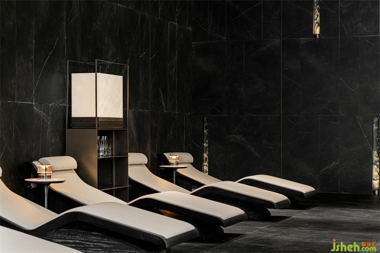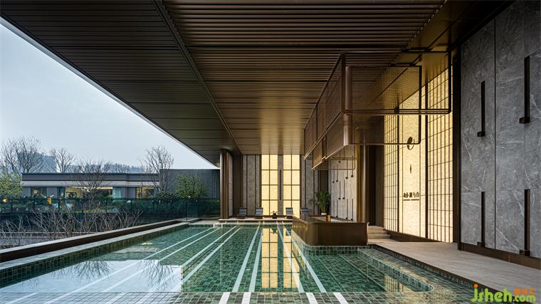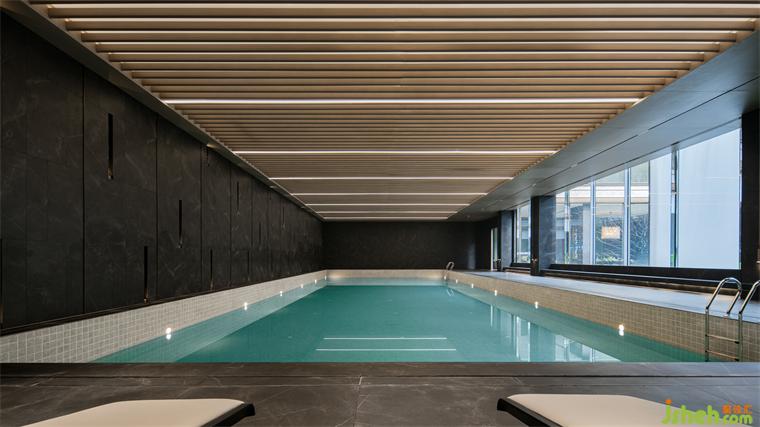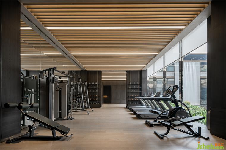 泳池圍繞景觀中庭展開,墻面和地面材料統(tǒng)一使用深色仿石材巖板,墻面星光點(diǎn)綴。營(yíng)銷中心設(shè)計(jì)健身房利用落地玻璃,擴(kuò)大自然流動(dòng)的空間屬性與自然產(chǎn)生對(duì)話,陽(yáng)光透過(guò)玻璃照射進(jìn)來(lái),運(yùn)動(dòng)的疲憊在這一刻得到撫慰。運(yùn)動(dòng)空間的設(shè)計(jì),創(chuàng)造出一個(gè)自在交流、健康運(yùn)動(dòng)的社交場(chǎng)域,為居住者構(gòu)筑一處志趣相投的圈層領(lǐng)地。