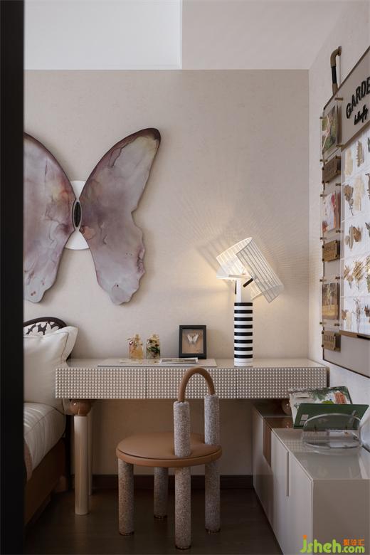 兒童房是屬于孩子的小小世界,床頭背景的絢麗彩蝶,帶動著空間浪漫靈動的氛圍,在自然童趣的裝飾下,樣板間設(shè)計開啟了童話世界的奇妙之旅。