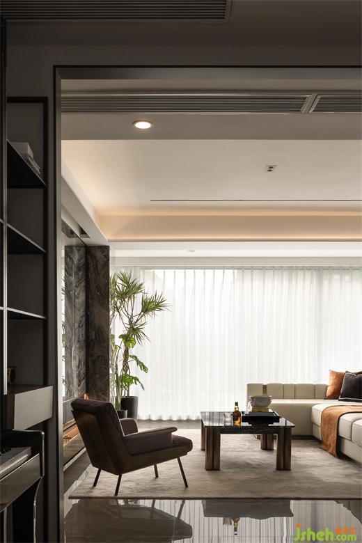 樣板間設(shè)計摒棄繁復(fù)的裝飾是一種自由的觀感,多功能廳被自然悠閑的氛圍環(huán)擁。坐于躺椅之上,漫談啜飲,琴聲陣陣,宛如回溯到寧靜午后,讓閑逸愜意之感與周遭自然相融。