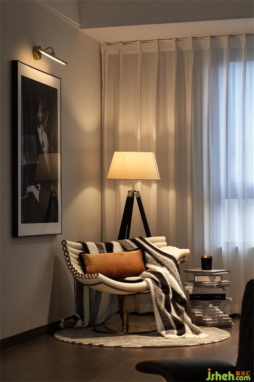 次臥簡約色調(diào)與其自帶的品質(zhì)感相輔相成。當(dāng)陽光照進,光影經(jīng)由不同的角度投下的陰影,則以裝飾品般通過另一種形式,塑造著家中的景象。