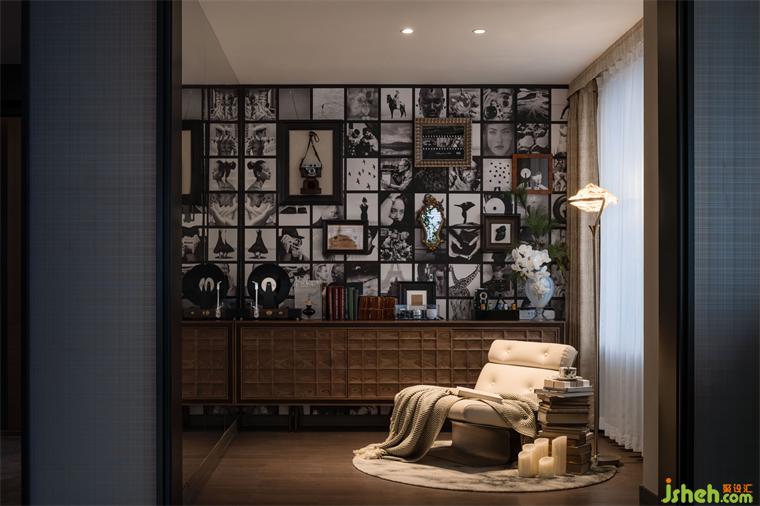 書房充實(shí)著主人的興趣與品味,滿墻的抽象藝術(shù)裝飾畫,如同精神世界的微縮畫卷,自由散布卻融為一體,樣板間設(shè)計(jì)在暗雅的色調(diào)中點(diǎn)亮藝術(shù)靈韻。