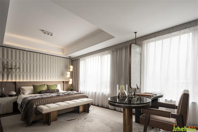 老人房在美學(xué)秩序的鋪陳下,充分利用自然光,樣板間設(shè)計選取沉穩(wěn)的暖棕及灰色色調(diào)與紋理交織,傳達出空間的溫度。