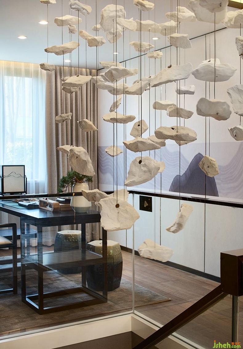 此次設(shè)計中,設(shè)計師有意將傳統(tǒng)的寫意山水畫運(yùn)用到空間設(shè)計當(dāng)中,以及結(jié)合現(xiàn)代中國人的生活習(xí)性,創(chuàng)造出符合現(xiàn)代生活情境之內(nèi)的家居新體驗。室內(nèi)設(shè)計師