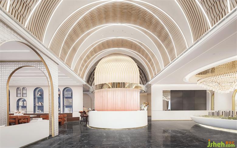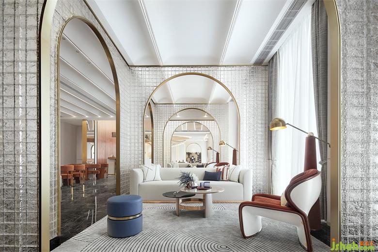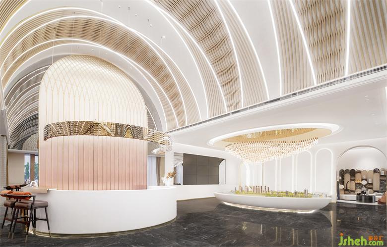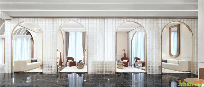 鏡面售樓處設計與拱門元素不斷重疊
