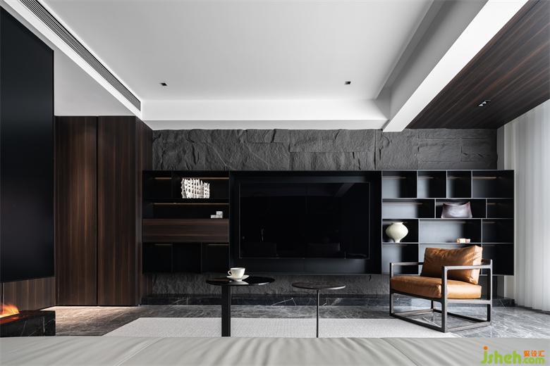 質(zhì)感強(qiáng)烈的木皮也讓空間多了些許高級感