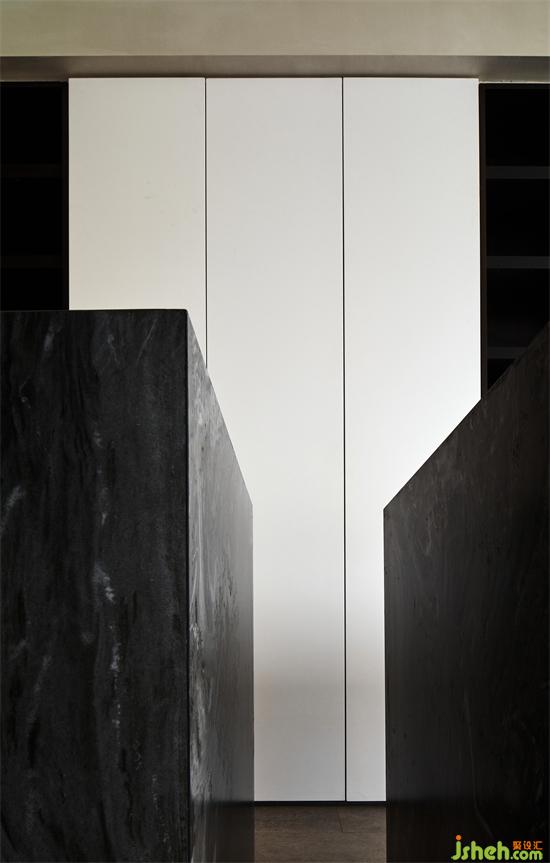 Different forms of island in the material selection area, the combination of virtual and real, details of chamfering processing, the gap left empty, make this huge space become light, just like installation art.