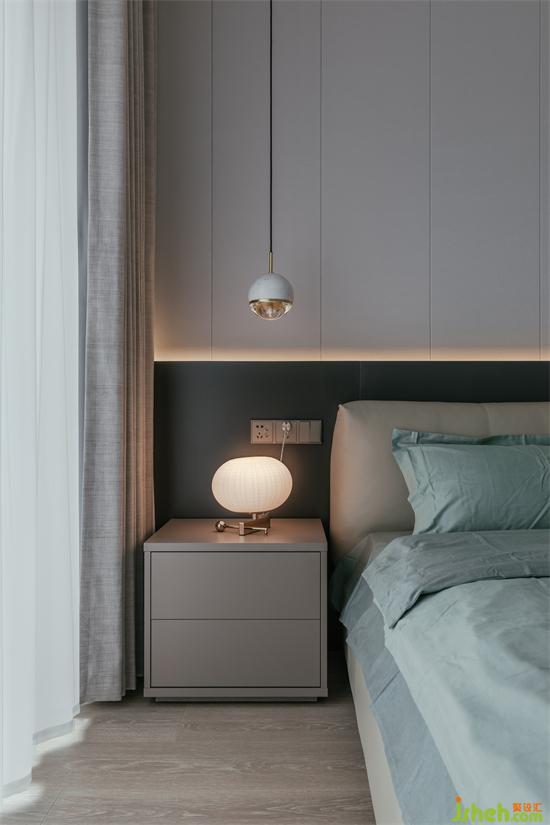 Warm and relaxed sleeping environment is the design idea of this bedroom space, warm floor, soft hard bag and even the oil painting of the same color are in agreement with this theme.