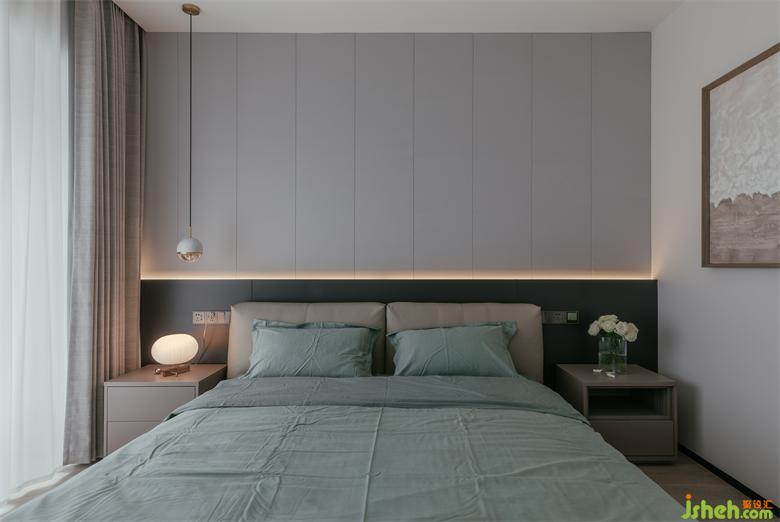溫暖放松的睡眠環(huán)境是這個(gè)臥室空間的設(shè)計(jì)思路,溫潤的地板,家裝設(shè)計(jì)柔和的硬包甚至相同色系的油畫都在契合這個(gè)主旋律。