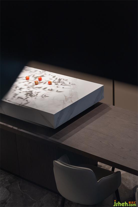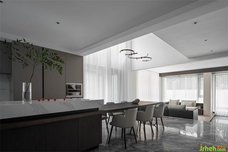 The kitchen area has made an open integrated layout, without the constraints of the wall, the permeability of the space is more obvious, the island and the table are a font interspersed link, the restaurant has done the empty processing, in the height of the space also has the best reflection, the atmosphere and comfort has been throughout the design.