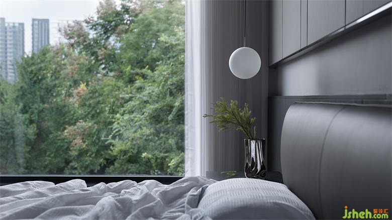 Outside the green window, nature and the interior form a good interaction, let nature bring more atmosphere to the interior, black, white and gray quiet space and the environment at the moment harmony.