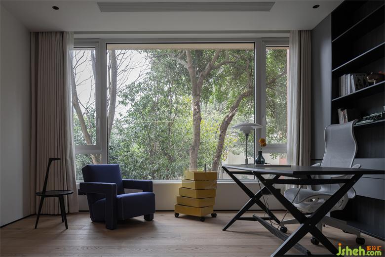 andscape is the best designer, smart design should also fully respect the composition of landscape, we through a huge glass turned the outdoor thick branches into a part of our design, seasonal rotation, yellow and green change, not any redundant complex decoration more attractive?