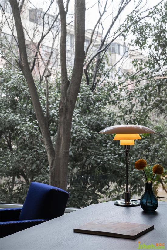 景觀是最好的設計師,聰明的設計也要充分尊重景觀的構成,我們通過一扇碩大的玻璃把室外粗大的樹枝變成我們設計構成的一部分,季節(jié)輪轉,黃綠更迭,不比任何多余繁雜的裝飾更有魅力嗎?