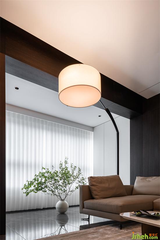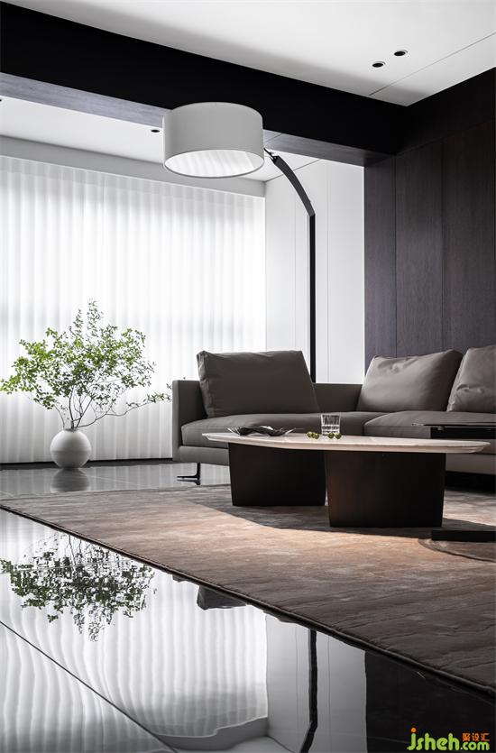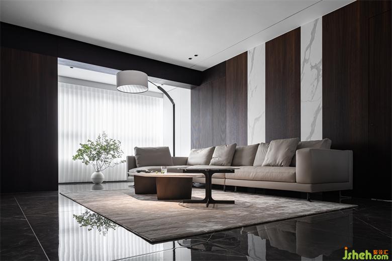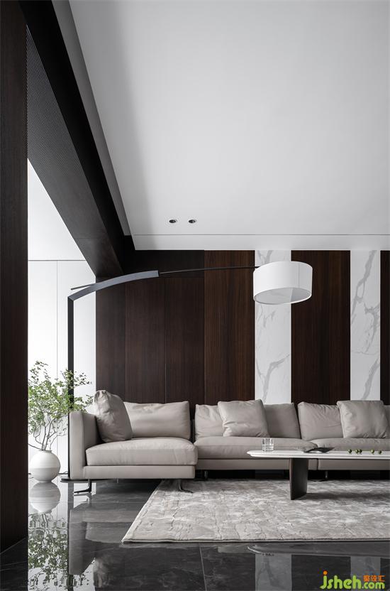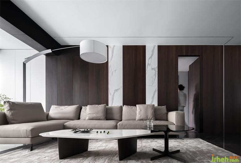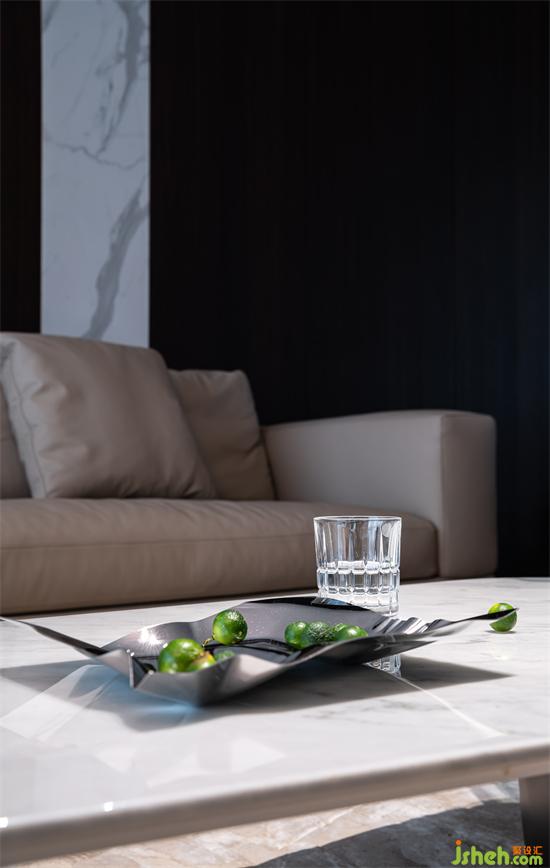 設(shè)計(jì)的都市感,黑白永遠(yuǎn)被追捧,極具質(zhì)感的煙熏橡木木皮把空間的基調(diào)做了鋪陳,山水樾瀾庭家裝設(shè)計(jì)白色的巖板點(diǎn)綴其中,無(wú)疑提升了材料的現(xiàn)代感,墻面延伸至頂面的線(xiàn)形燈光貫通了材料的鏈接關(guān)系。