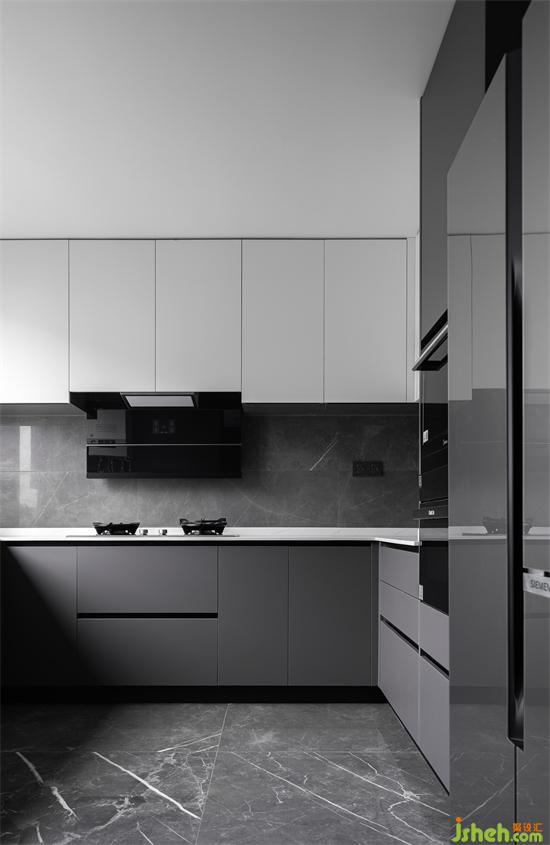 Another major structural change lies in the adjustment of kitchen functions. The original location space is small, which makes it difficult to accommodate relatively complex kitchen equipment. The design changes the kitchen to the position of spare bedroom in the north, and the square layout can accommodate the storage requirements of the kitchen. The use of space is more reasonable and the permeability of space and the richness of function are satisfied.