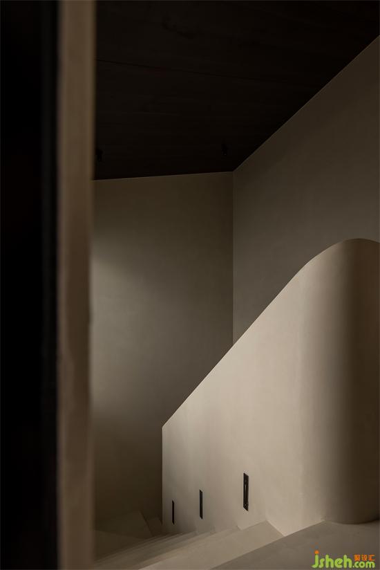 文首提到的這個(gè)建筑小品便是住宅的樓梯。景瑞無(wú)雙別墅設(shè)計(jì)原有的建筑樓梯狹窄閉塞,在進(jìn)行土建擴(kuò)改之后才形成具有一定舒適感的功能載體。