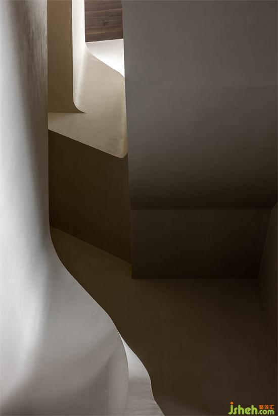 空間形態(tài)設(shè)立了許多對(duì)立元素,扭轉(zhuǎn)與平直、方正與圓弧、離散與聚合。景瑞無(wú)雙別墅設(shè)計(jì)諸多手段旨在打造一個(gè)具有對(duì)立感與趣味性的實(shí)驗(yàn)空間。