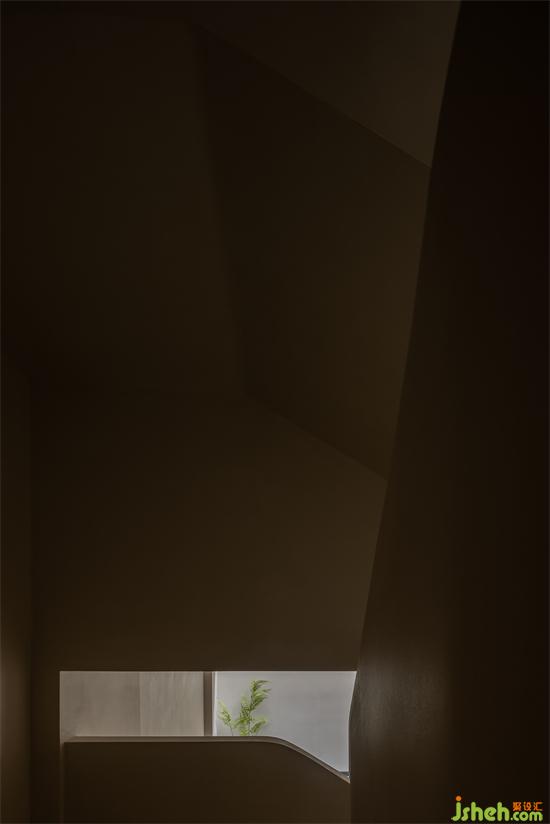In order to retain the ultimate form of beauty, the extra material will destroy the texture of the stairs themselves, so the use of integrated micro-cement materials to cover the stairs, let the entire staircase as a building as a device to stand in this five-story deep space.