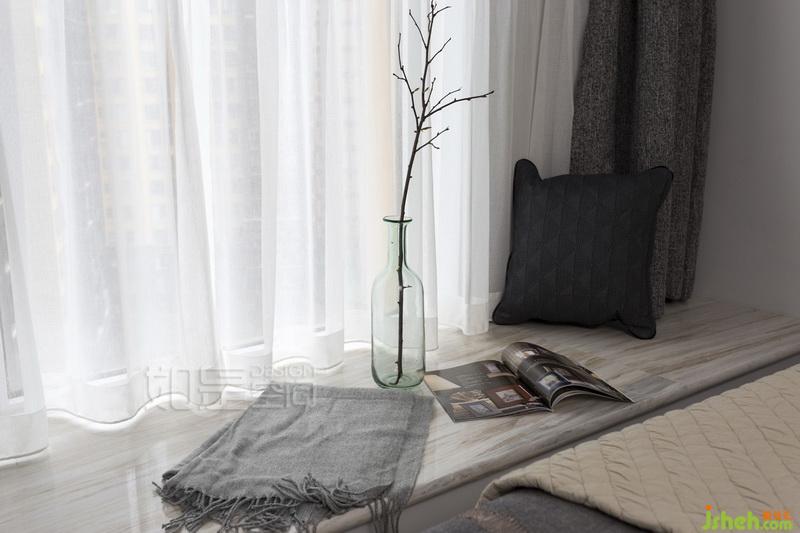 主臥未設(shè)置大尺碼衣柜(另利用小臥房做專門衣帽間),這為主臥帶來了更多的開闊適意感,同時(shí)也為小書桌與書柜贏得了空間。