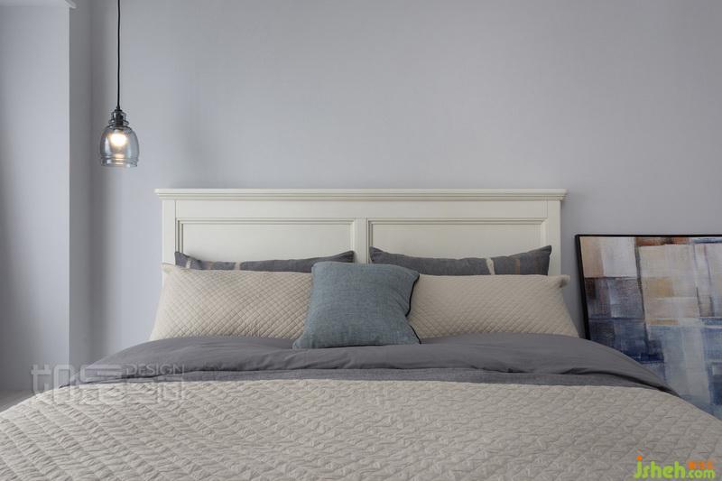 主臥設(shè)計(jì)公司同樣采用無主燈的簡(jiǎn)潔設(shè)計(jì)。床頭一側(cè)點(diǎn)綴性懸掛極簡(jiǎn)吊燈,帶來優(yōu)雅藝術(shù)感。