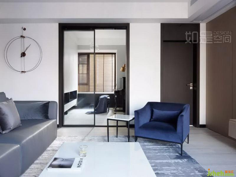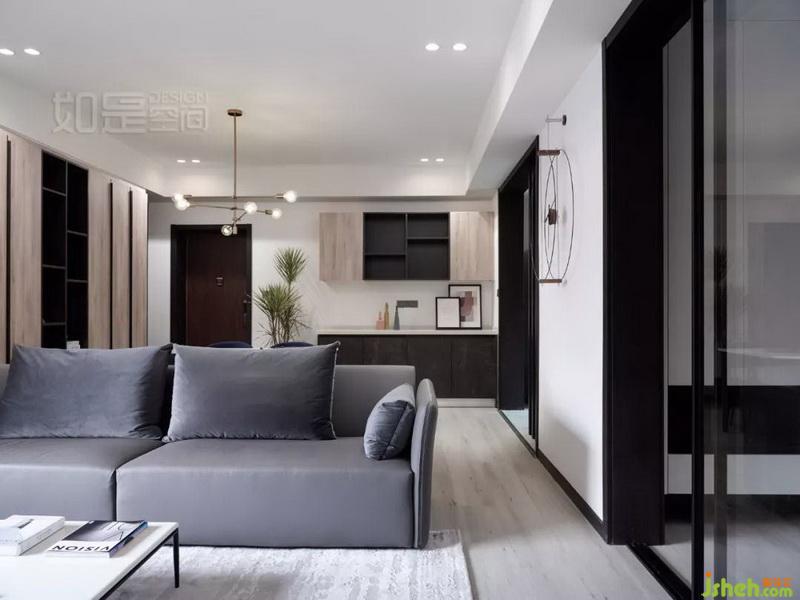 木飾面的使用,結(jié)合黑色床頭背景,既和整個(gè)空間搭配,又在黑灰中顯得溫馨。