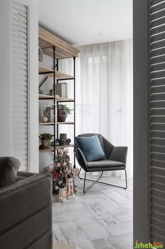 中間木百葉折疊門不影響客廳采光的同時(shí)將兩個(gè)空間區(qū)隔