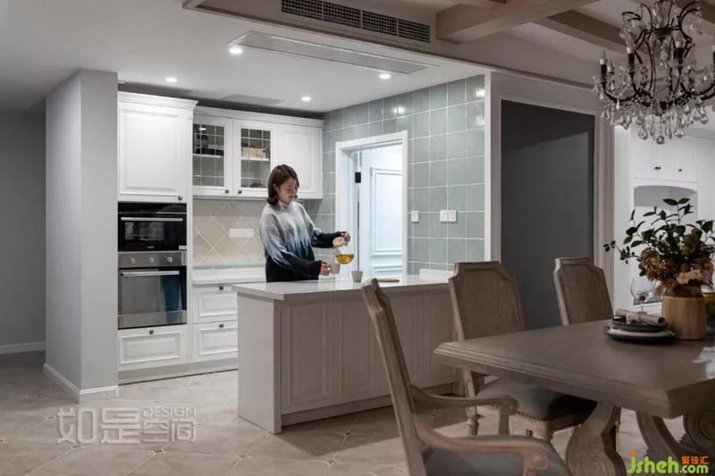 餐廳與西廚融為一體的設(shè)計(jì),擴(kuò)大了空間通透感