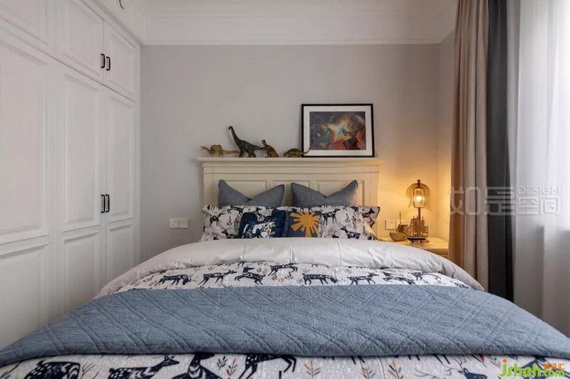 業(yè)主希望兒童房的硬裝和整屋風(fēng)格統(tǒng)一,免得日后此房另做他用而需大改。目前則主要通過床品的選擇和小朋友的擺件收集來營造童趣氛圍。