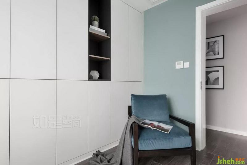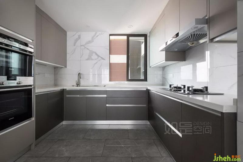 淺色墻頂面與臺面、略深色的柜門與地面,巧妙營造出現(xiàn)代簡約感