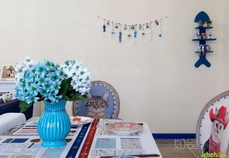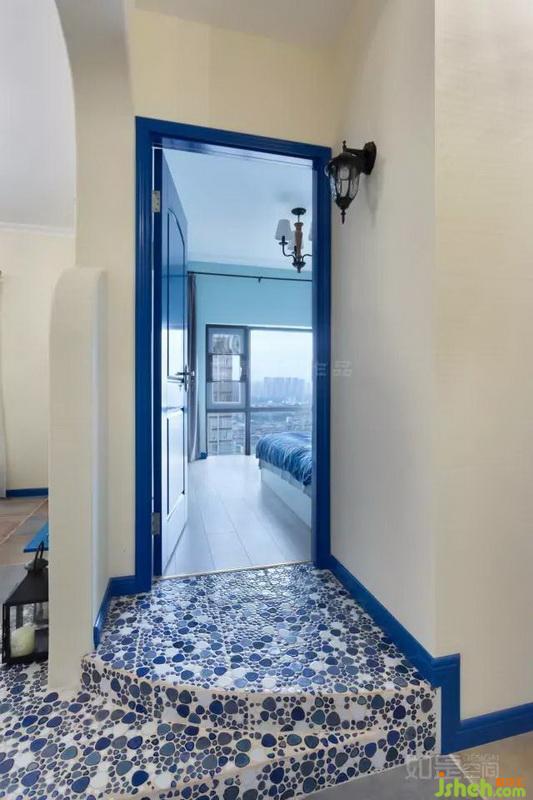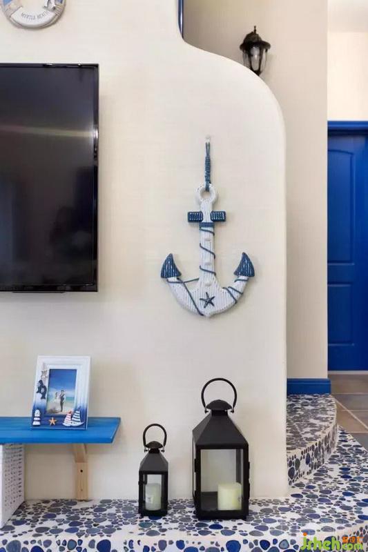 藍色踢腳線是遠處的海平面;斑駁的燈光是夜色里閃著螢光的浪;柔軟的沙發(fā)是腳底濕潤的沙灘;植物清香四處飄散,暖暖的海風將你包圍??v然是一粒鹽,也甘愿縱身撲入這樣的意境中。