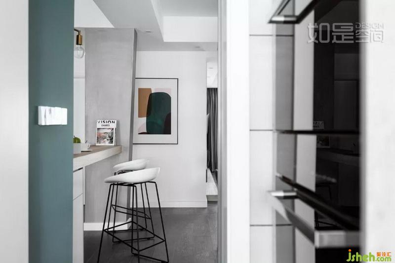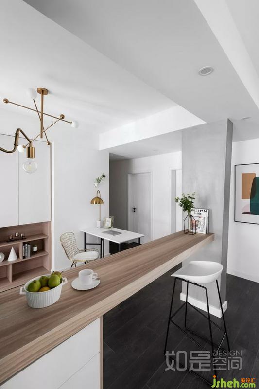 因?yàn)榘膳_的設(shè)立,使餐廳與書房的關(guān)系,即相互聯(lián)系又功能區(qū)隔
