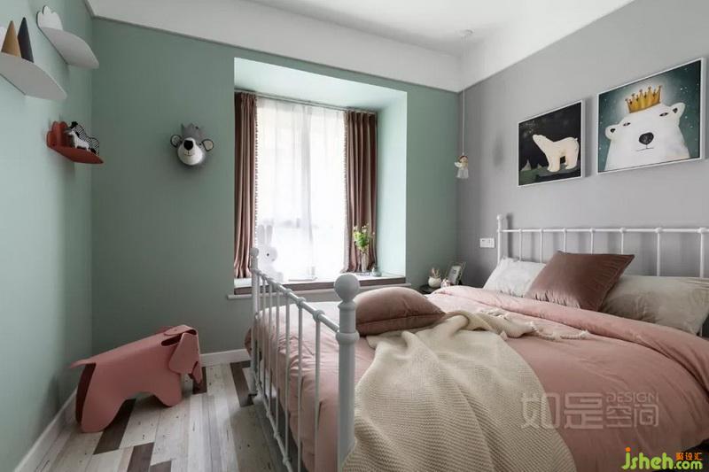 這是女兒的房間,墻面掛畫、動物掛件,及床頭天使吊燈,共同塑造出清新舒適、溫馨可愛的感覺