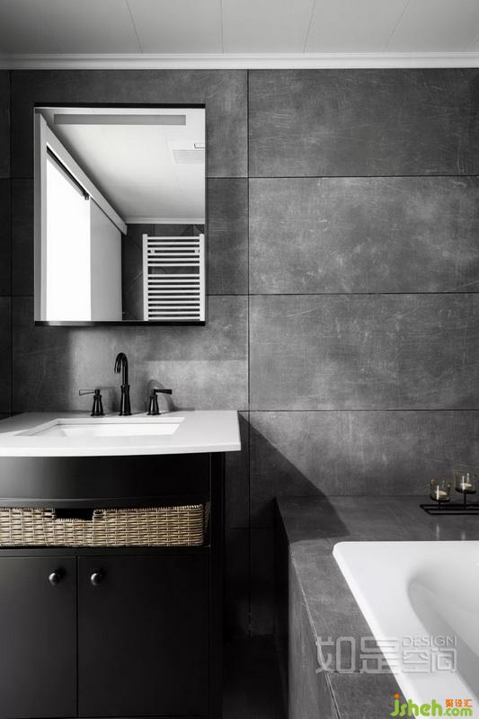 衛(wèi)生間室內(nèi)設(shè)計師特意采用了水泥帶劃痕效果的墻磚,細節(jié)層次豐富、又顯得個性獨特。