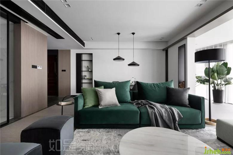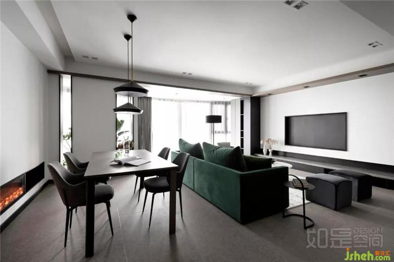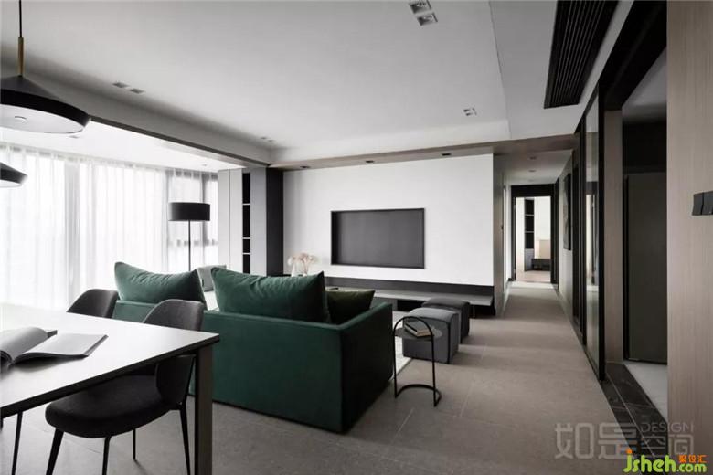 室內(nèi)設(shè)計(jì)是在本次設(shè)計(jì)整體以白色結(jié)合高級灰的木飾面為基調(diào),再搭配以經(jīng)典黑。以綠色的沙發(fā)作為點(diǎn)睛色,展現(xiàn)一種對于沉靜、舒適的向往