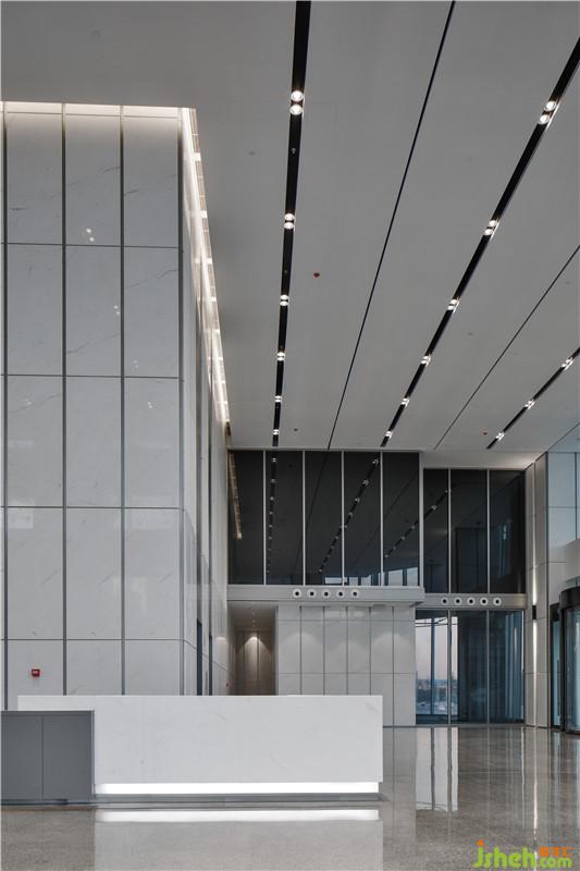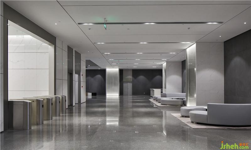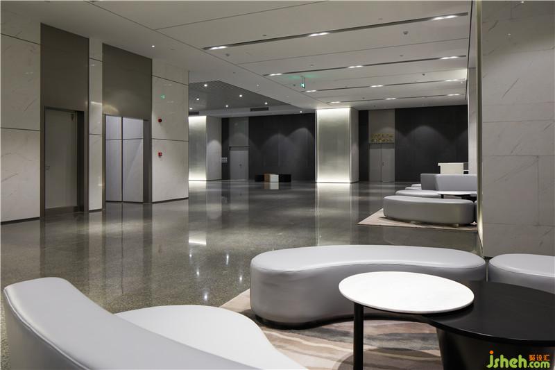 根據(jù)對建筑結(jié)構(gòu)以及對空間的理解,室內(nèi)裝飾整體更趨向于簡約時尚。雙向通透的玻璃幕墻保證了室內(nèi)外空間的連續(xù)性,雙層層高形成的通高空間,不但使這種連續(xù)性進一步獲得了立體上的延伸,也使空間看起來層次豐富,卻又被精致的規(guī)劃為不同視角的動圖感。墻面均采用整體石材干掛,背嵌噴砂不銹鋼條,統(tǒng)一的無膠處理也使得空間整體視覺更為干凈利落。空間中的柱子一分為二,中間鑲嵌不銹鋼板,避免過于笨重的柱身給空間造成壓抑感??臻g整體材質(zhì)統(tǒng)一,卻在工藝上處均加以精致的細節(jié)處理,避免空間的單調(diào)乏味,也提升了設(shè)計上的巧妙之處。